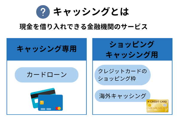 キャッシングとは、現金を借り入れできる金融機関のサービスを言います。